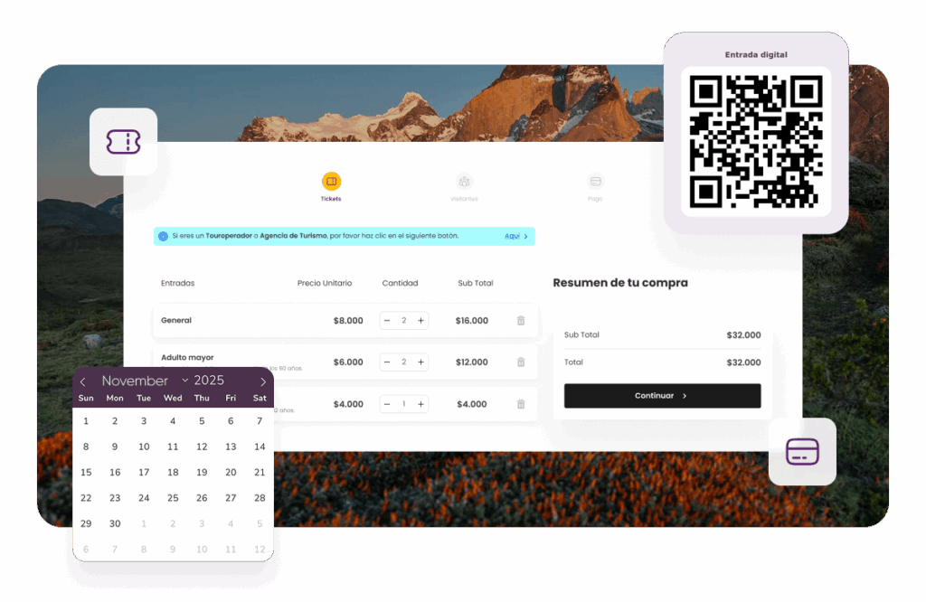 Nuestro sistema se adapta a ti. Desde termas y observatorios hasta viñas y tours, si vendes tickets, tenemos la solución perfecta para impulsar tu crecimiento.